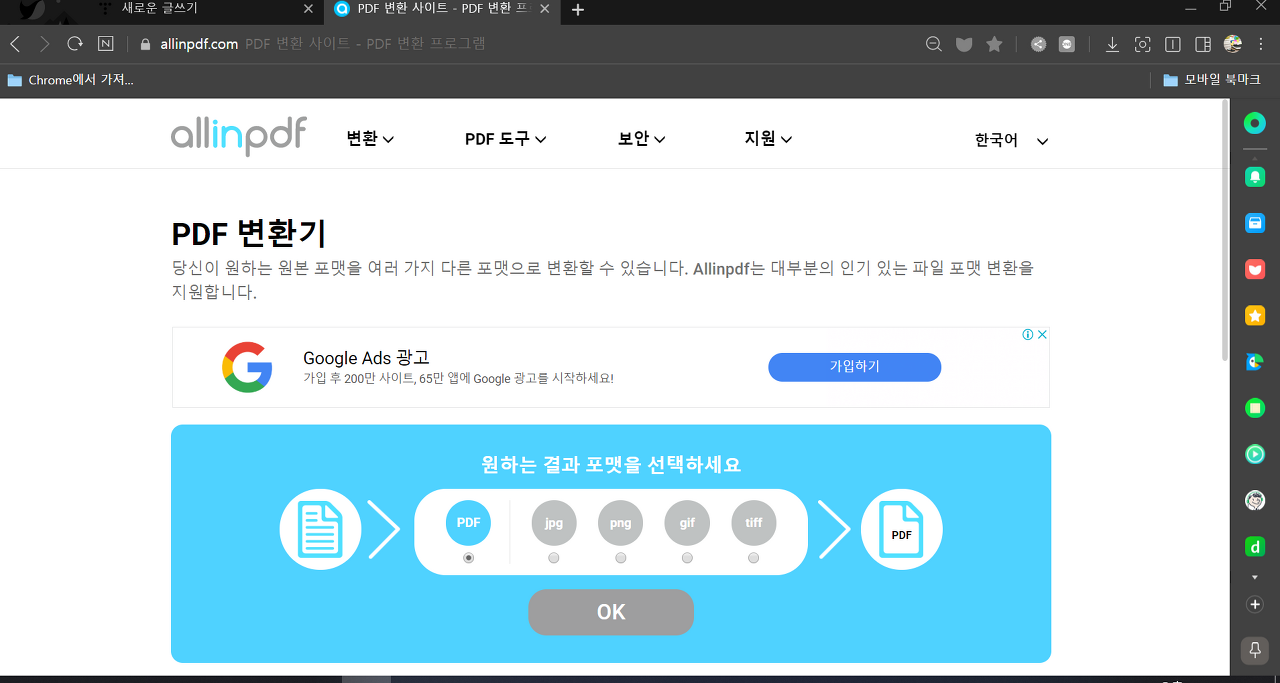 여기로 접속하시면 모든 파일을 PDF로 변환하는 Allinpdf로 접속하실 수 있습니다.