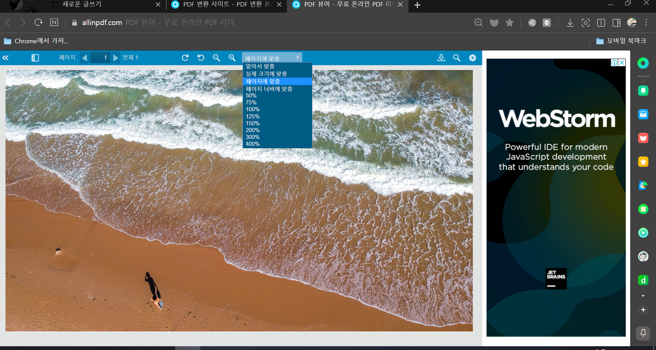 변환된 파일에 미리보기 입니다. 페이지 맞춤 기능이 있어 편리하게 사용할 수 있습니다.