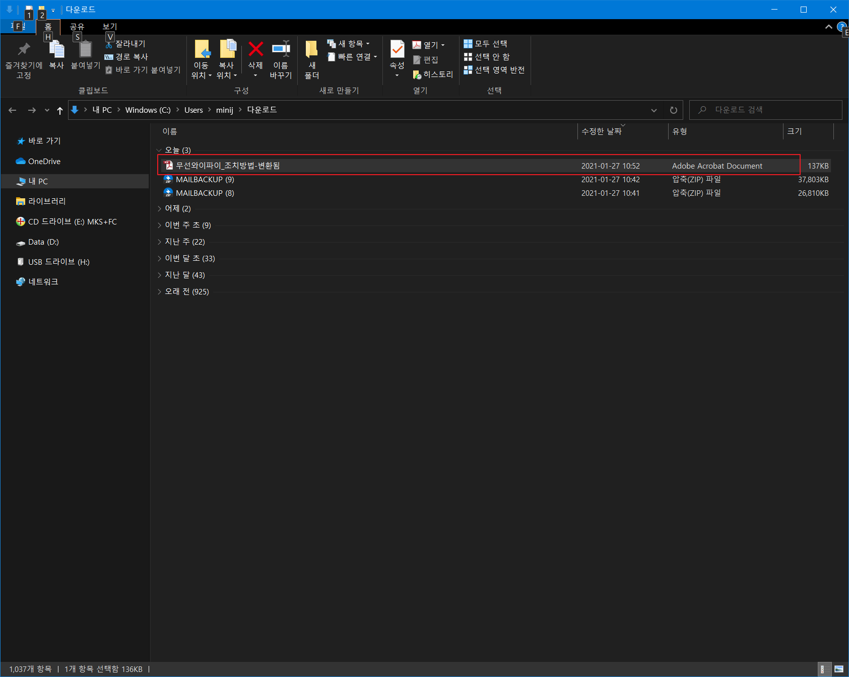 다운로드 폴더로 이동하면 PPT 파일이 PDF 형식의 파일로 변환된 것을 볼 수 있습니다.