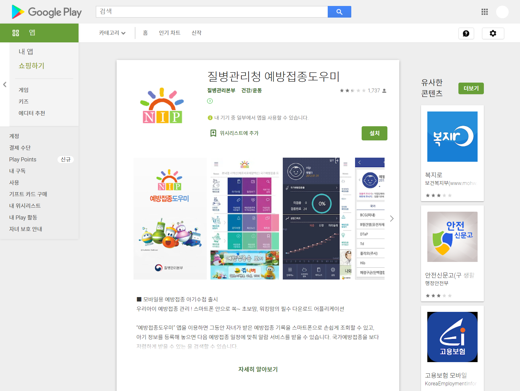 예방접종 기록, 예방접종 일정, 예방접종 사전예약 등을 할 수 있는 다기능 앱입니다.