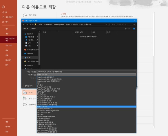 파워포인트 파일을 동영상으로 만들 수 있는 기능이 있습니다. 아주 쉽고 편리한 방법이며, 유용하게 사용할 수 있을듯 합니다.