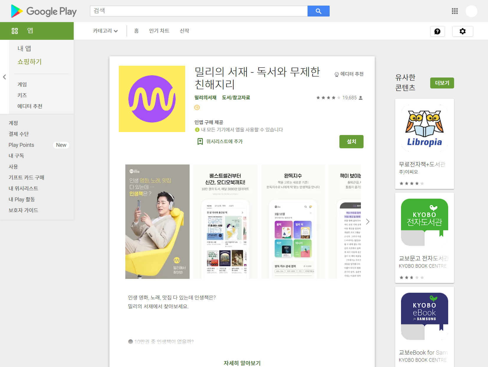 밀리의 서재 - 독서와 무제한 친해지리 - Google Play 앱