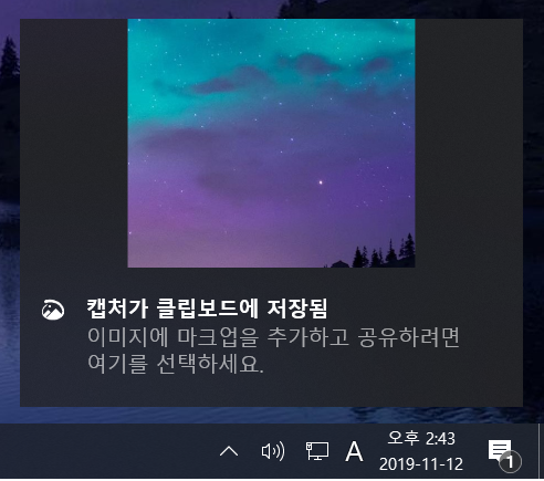 캡처가 되면 클립보드에 저장되었다는 알림이 생기며, 필요시 메세지를 선택하여 편집하거나
