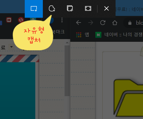 자유형 캡처 : 마우스를 선택하는 대로 자유롭게 범위를 설정하여 캡처가 됩니다.