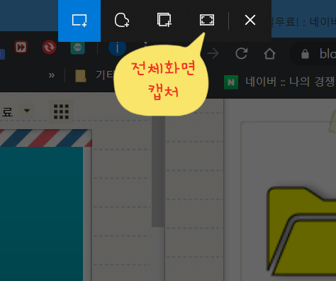 전체화면 캡쳐 : Print Screen 버튼 누른거와 동일하게 윈도우 화면 전체가 캡처 됩니다.