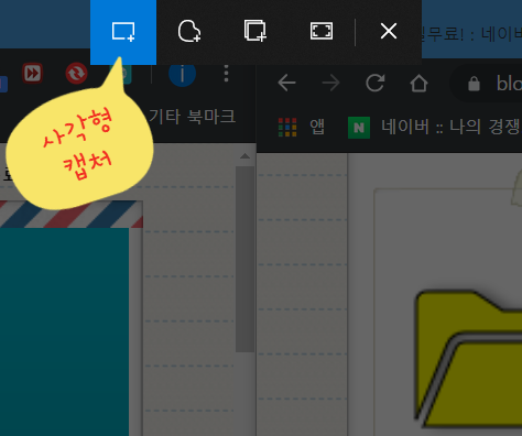 사각형 캡처 : 사각형으로 범위를 설정하면 그 설정된 부분만 캡처가 됩니다.