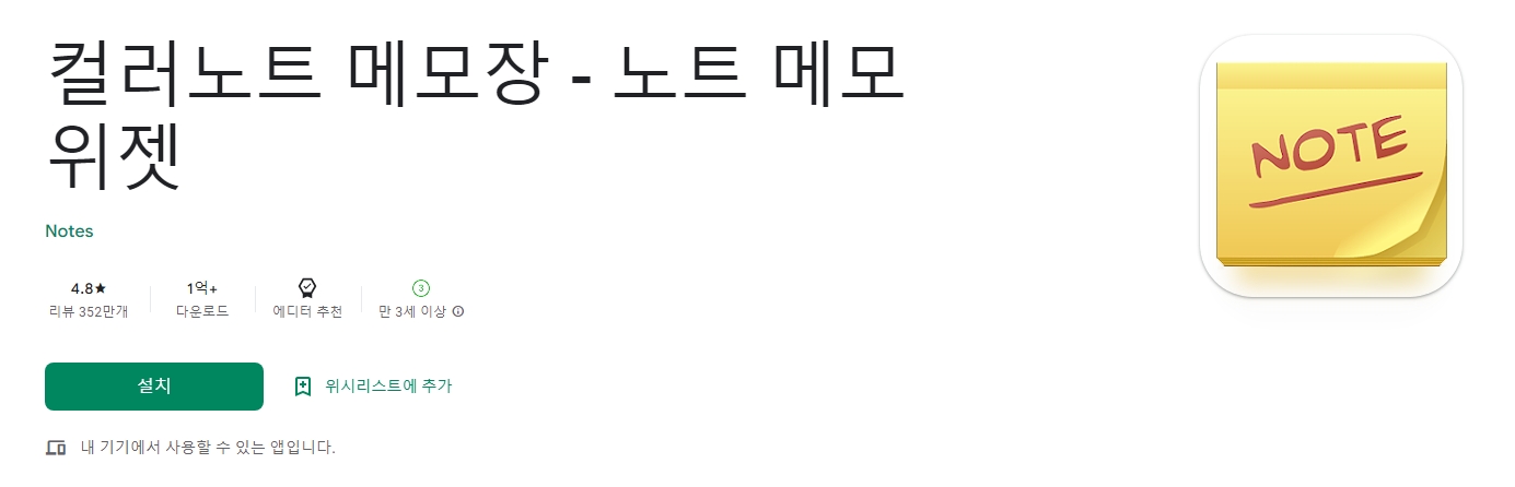 컬러노트 메모장 - 노트 메모 위젯 - Google Play 앱