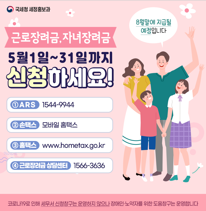 2022년 근로장려금 지급일은 2022년 상반기 소득분에 대한 신청 기간은 09월 1일부터 09월 15일까지 이고