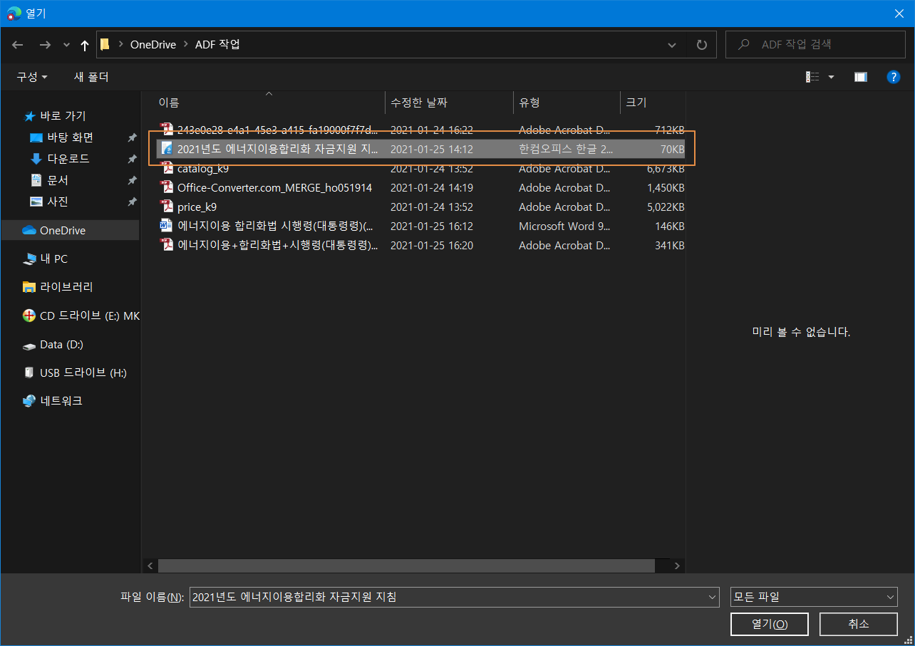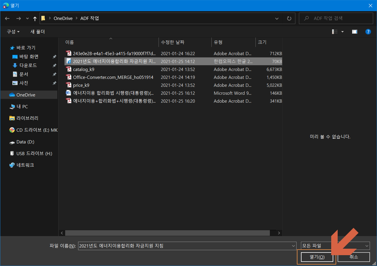 PDF 형식으로 변경할 파일을 선택합니다.