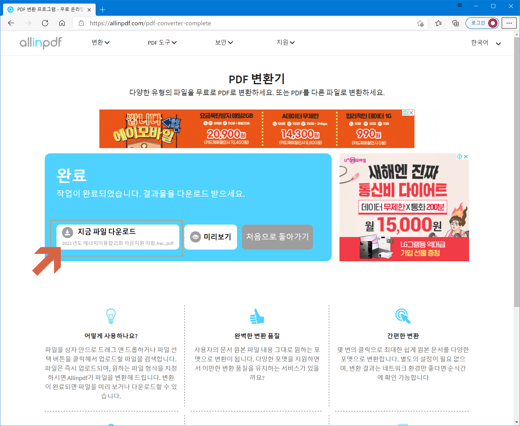 작업이 완료되었습니다. <지금 파일 다운로드>를 선택합니다.