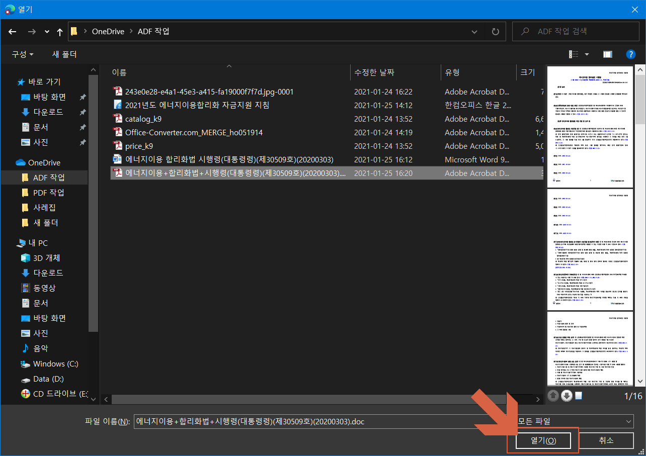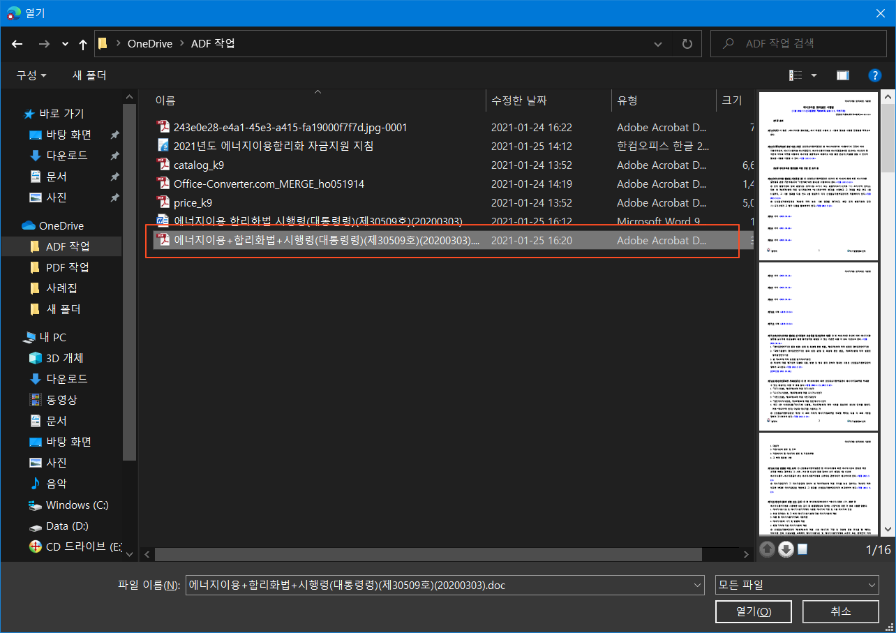 워드 파일로 변환하고자 하는 PDF 파일을 선택합니다.