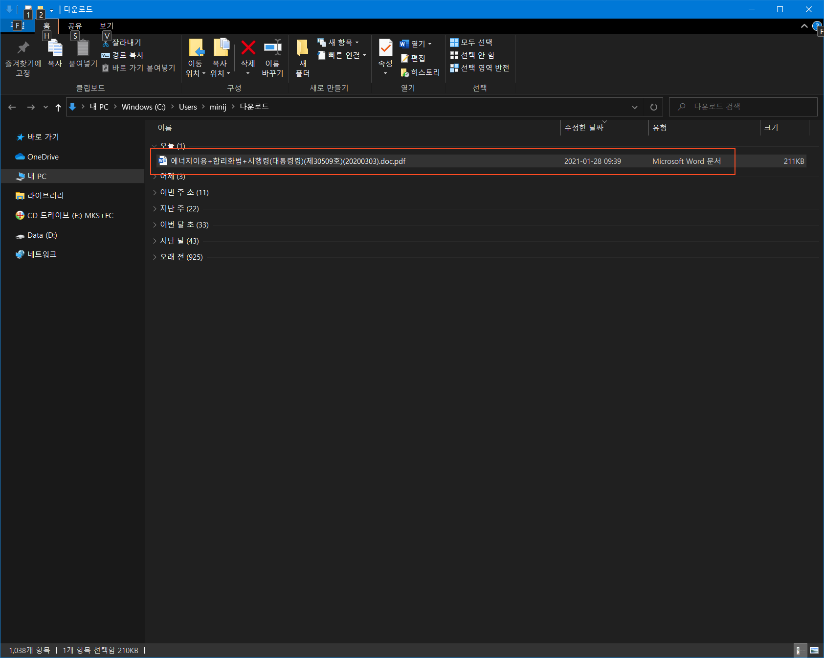 다운로드 폴더로 이동하면 기존 PDF 파일이 DOC 포맷으로 변환되어 저장된 모습을 볼 수 있습니다.